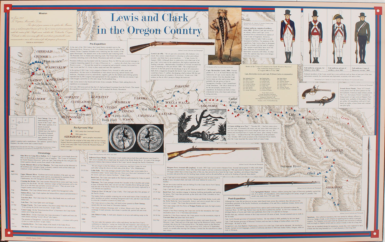 Lewis & Clark in the Oregon Country Poster Board, has Chronology from 1803-1806, has lots of intimation, (this would cover Oregon, some of Washington & Idaho), 48'' x 30'', has hard back so you can rest against the wall. Grade: MINT - Value: 20 to 200