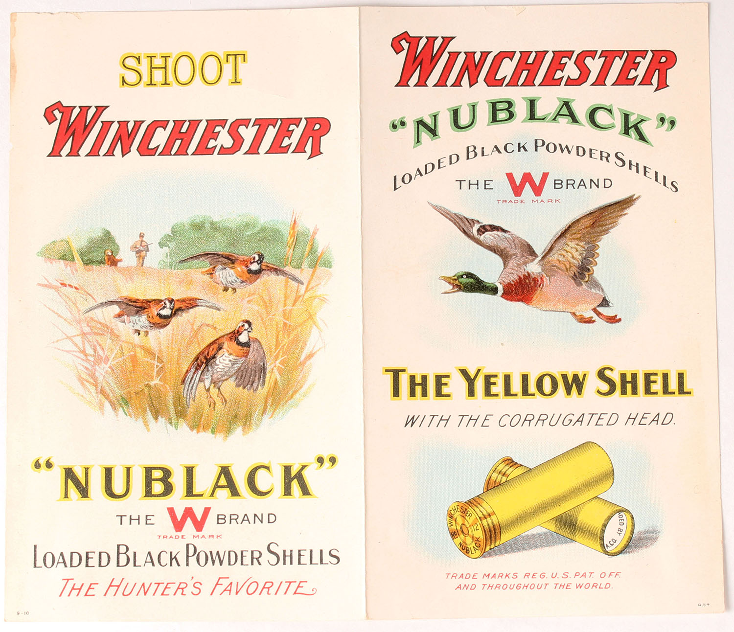 RARE Winchester brochure, promotes NUBLACK shotshell, has wonderful full color images of mallard on front & quail on back, scarce. Grade: MINT - Value: 100 to 400