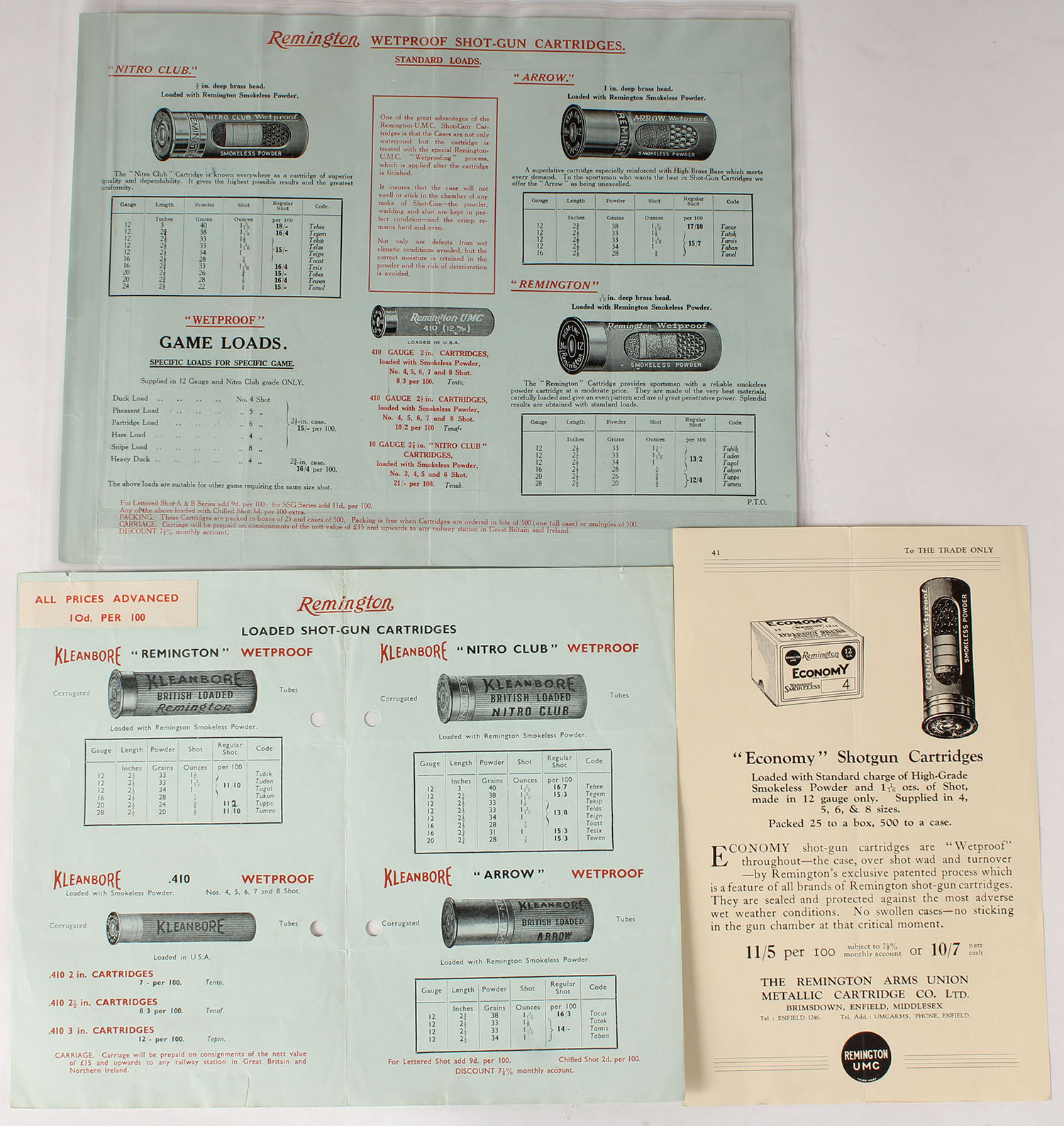 Lot of 3 Remington BRIMSDOWN, ENGLAND, advertisements. Grade: Excellent ++ - Value: 20 to 60