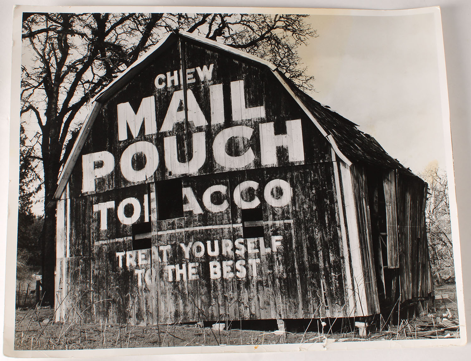 Black & White photo of Chew Mail Pouch Tobacco on side of barn. Grade: Excellent - Value: 2 to 30