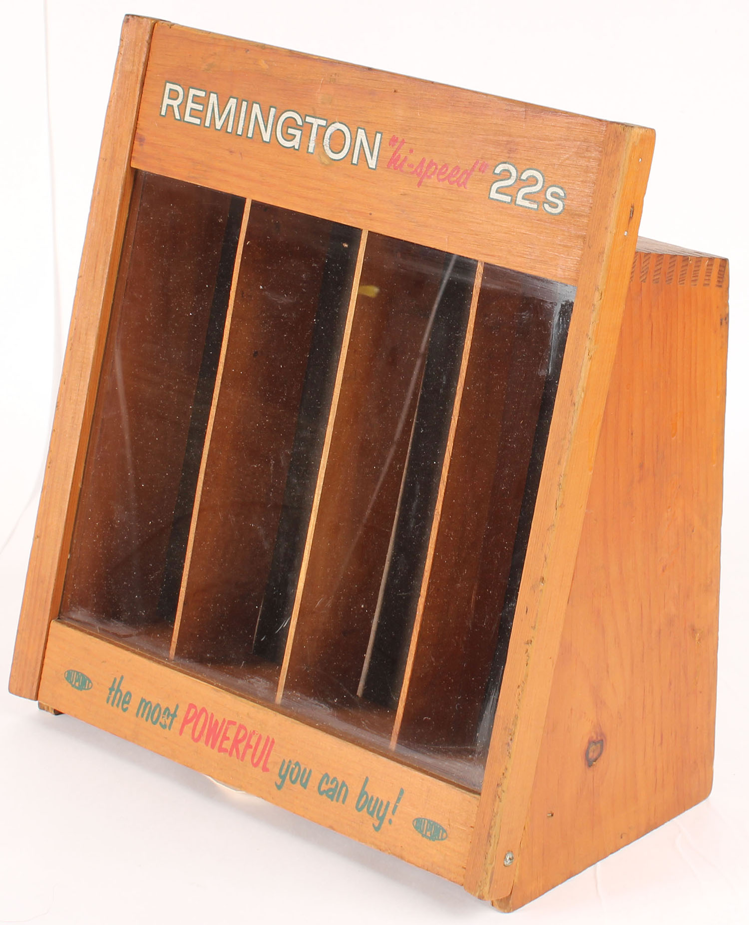 Remington HI-SPEED 22's display, wood is solid, wood lock piece functions, red, green and white print has nice color Grade: Excellent ++ - Value: 200 to 400