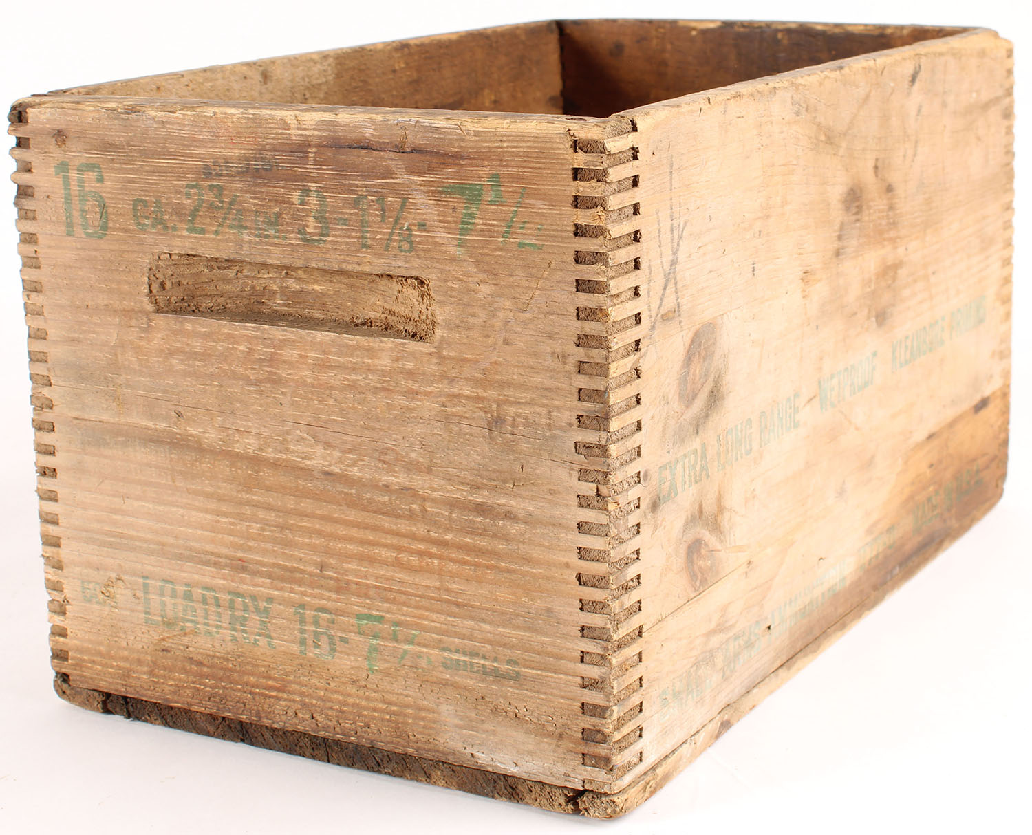 Remington, 16 Ga., Express, red, & green print is faded and crate has age soiling. Grade: Very Good - Value: 6 to 40