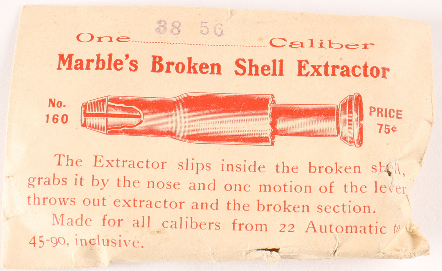 Marbles Broken Shell extractor, 38-56, No. 160, in original packaging. Grade: Excellent ++ - Value: 10 to 30