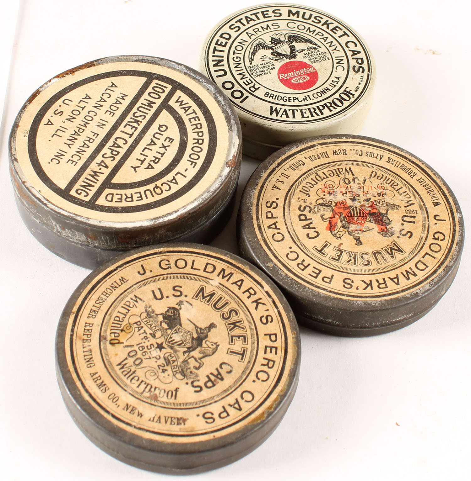 Lot of Rem UMC US Musket cap tins, all partial. Grade: Very Good ++ - Value: 4 to 40
