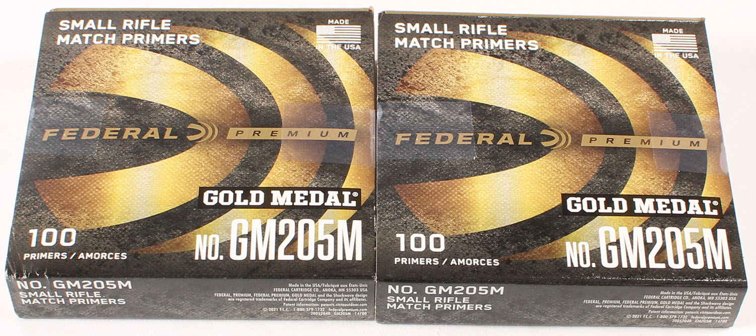 Lot of 2 Federal small rifle primer box, all Full, all nice and clean. Grade: Excellent ++ - Value: 10 to 40