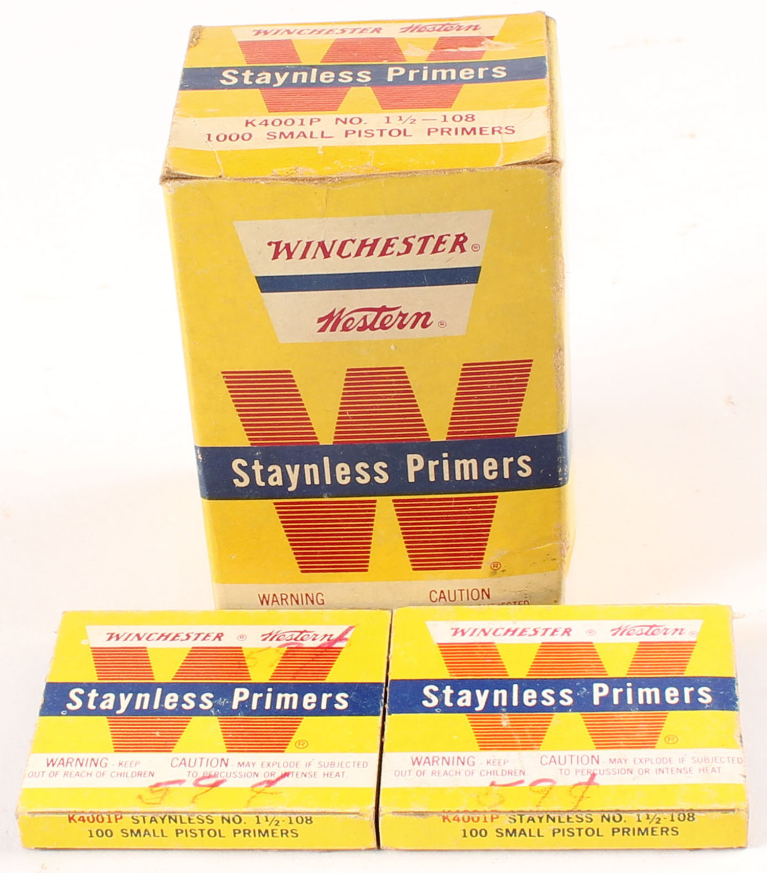 Winchester primer boxes and a brick, all Full, all nice and clean. Grade: Excellent ++ - Value: 20 to 80