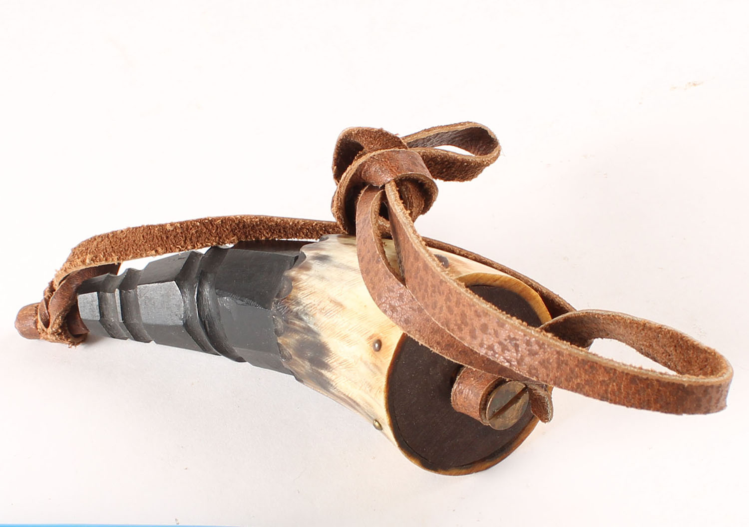 Powder horn, unmarked, 6'', very bright and clean. Grade: Excellent ++ - Value: 6 to 40