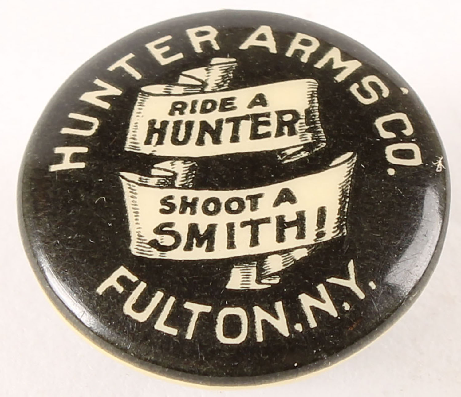 Hunter Arms Co of Fulton New York celluloid pinback. Grade: Excellent - Value: 100 to 300