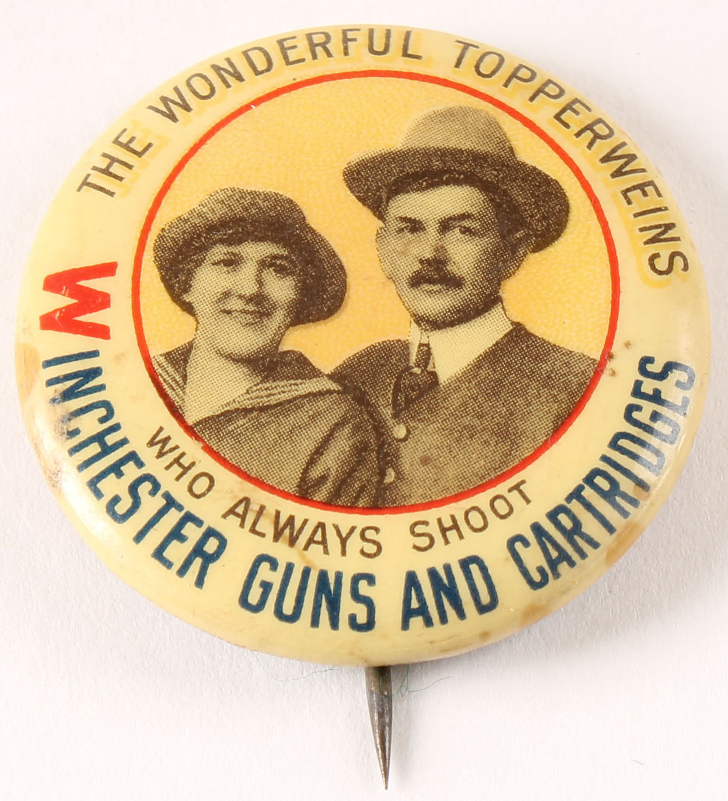 RARE! Winchester pinback, has light rust to edges whitehead & Hoag paperback. Grade: Excellent - Value: 30 to 90