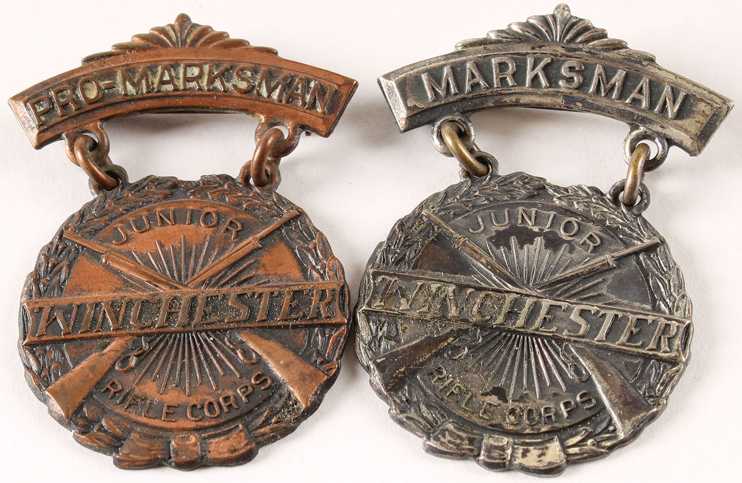 lot of 2 Winchester shooting medals, nice and clean, pro marksman and marksman. Grade: Excellent ++ - Value: 20 to 80