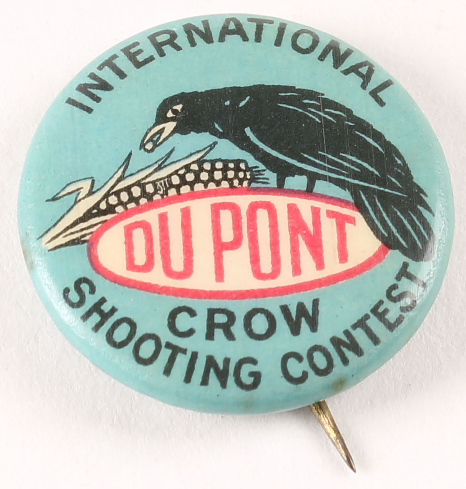 Dupont international crow shooting contest pinback, whitehead & Hoag paperback. Grade: Excellent - Value: 20 to 80