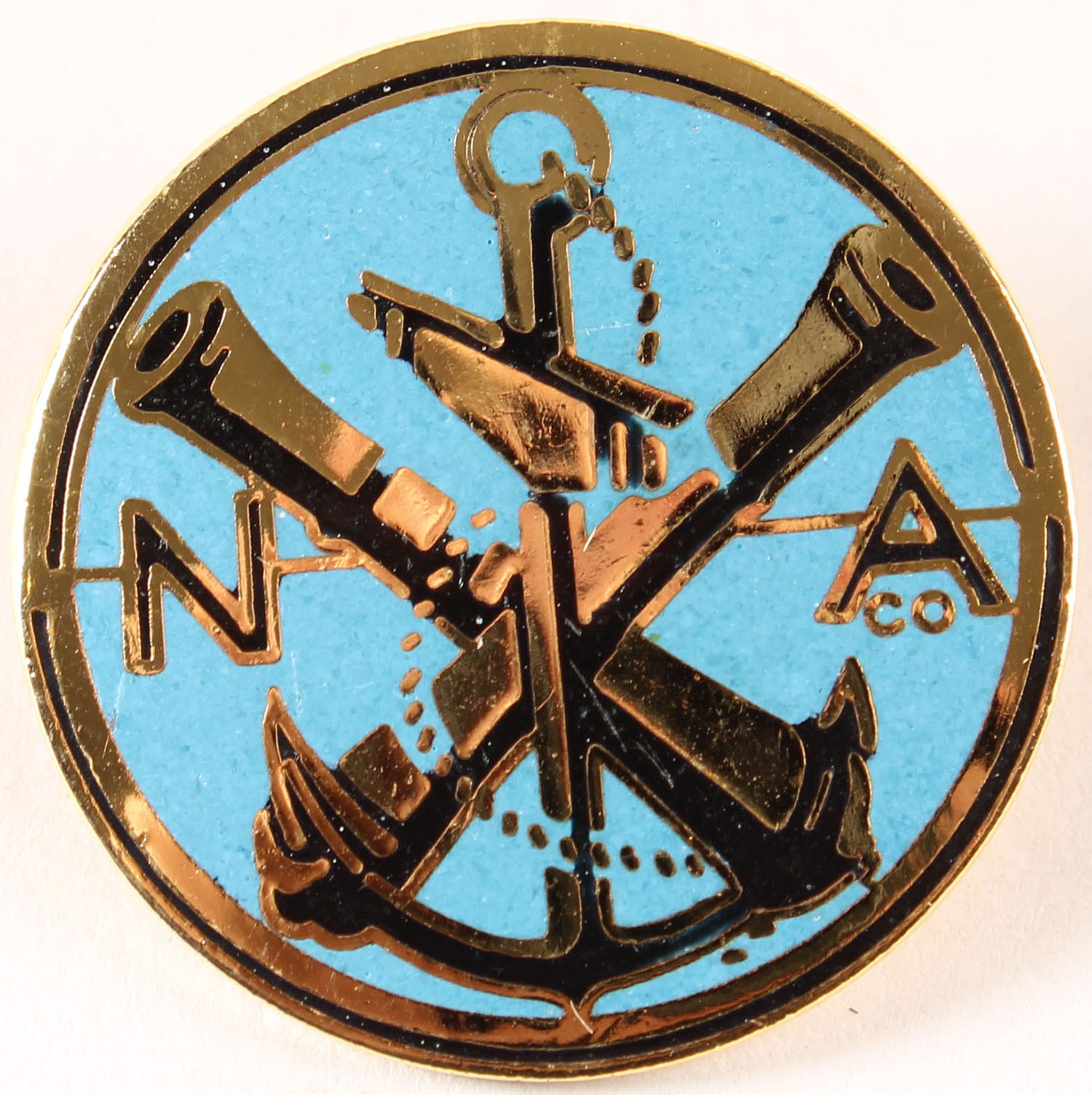 Navy arms pinback. Grade: Excellent + - Value: 16 to 60