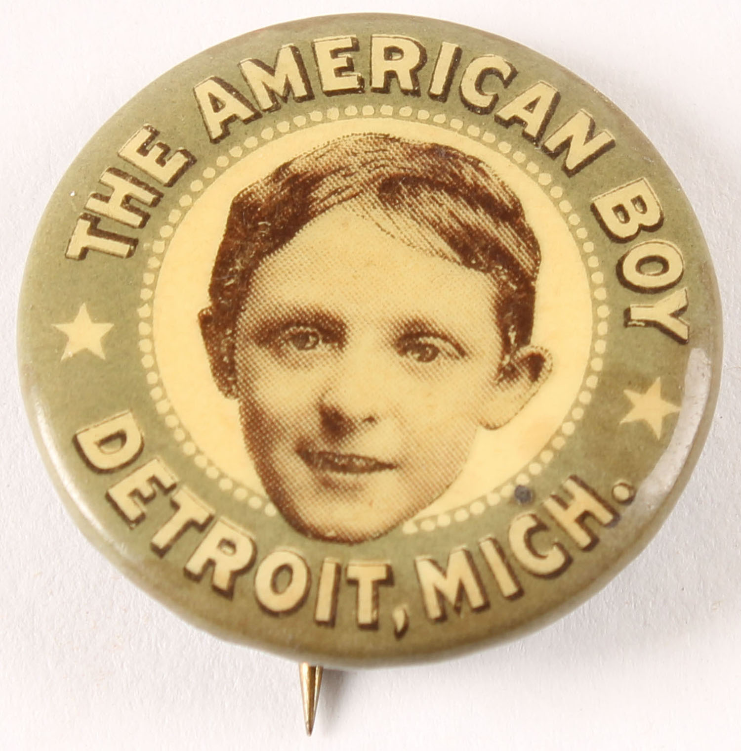 The American Boy Detroit, Mich. Pinback, the american boy paperback. Grade: Excellent - Value: 2 to 50