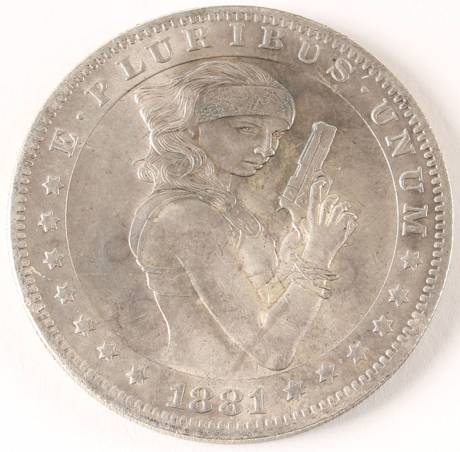 RARE! 1881 nude silver dollar coin with eagle on back. Grade: Excellent - Value: 100 to 400