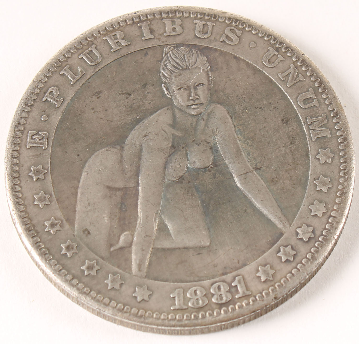 RARE! 1881 nude silver dollar coin with eagle on back. Grade: Excellent - Value: 100 to 400