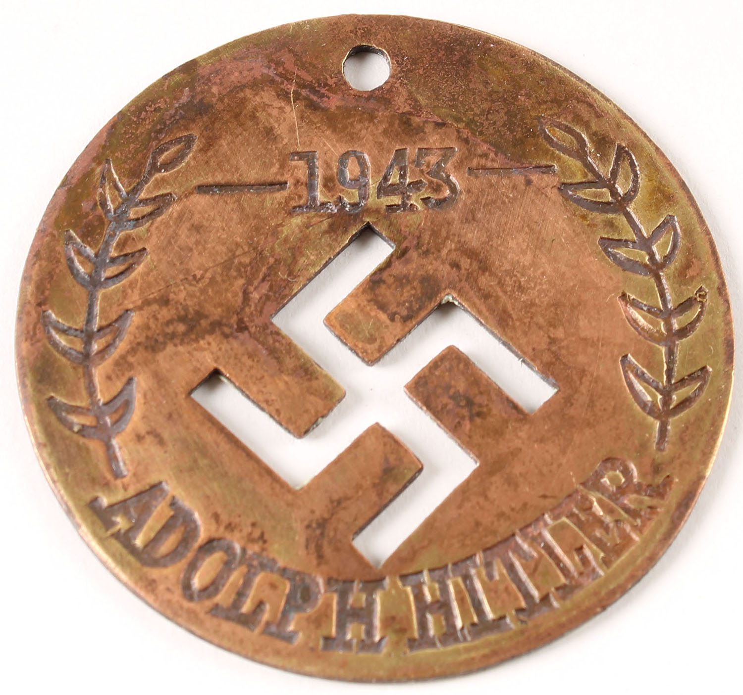 RARE! 1943 brass Nazi Adolph Hitler pedant or coin. Grade: Excellent - Value: 50 to 300