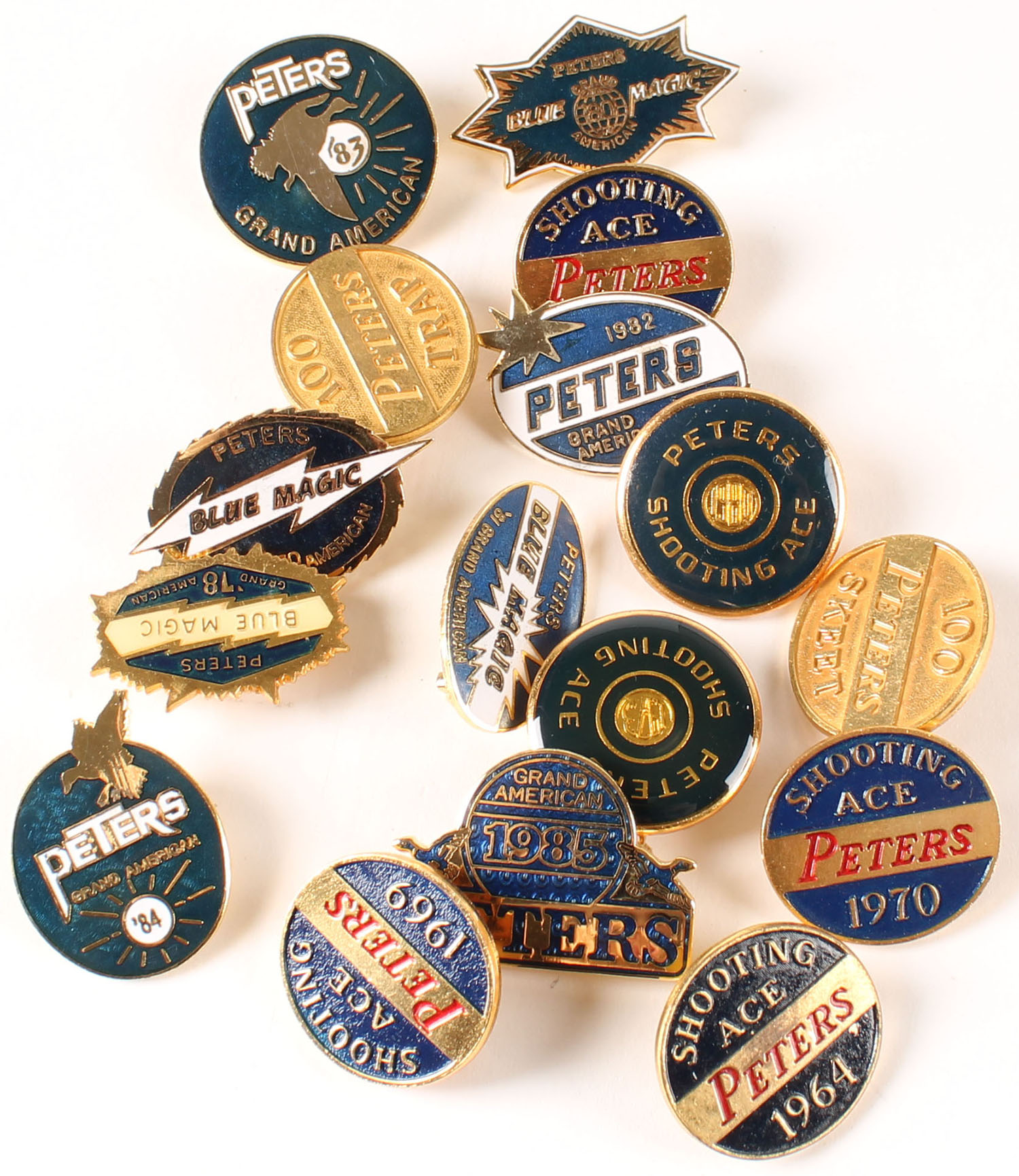 Large lot of Peters pinbacks. Grade: Excellent - Value: 10 to 50