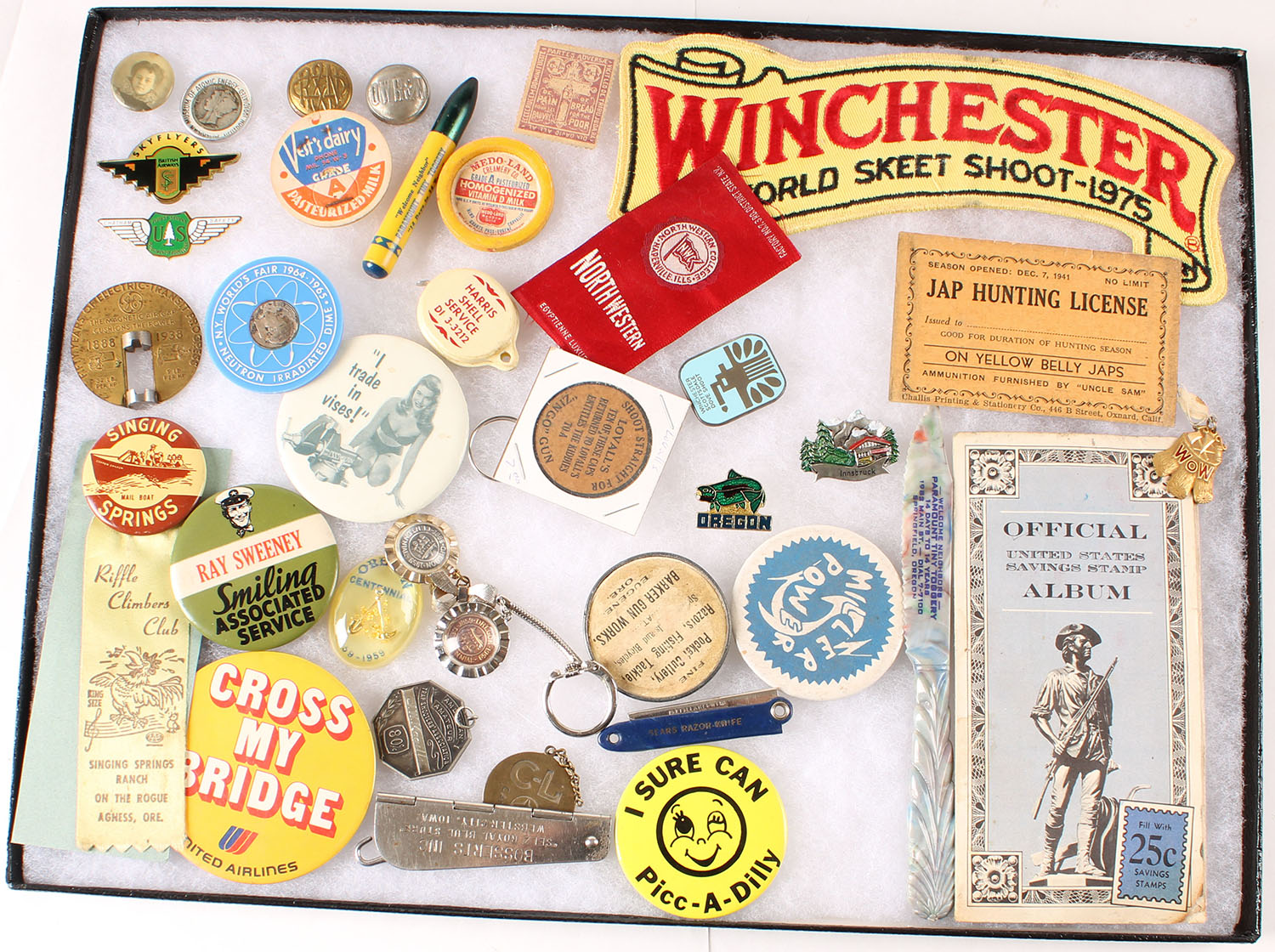 Lot of pins, coins, patches and etc.. Grade: Excellent - Value: 40 to 200