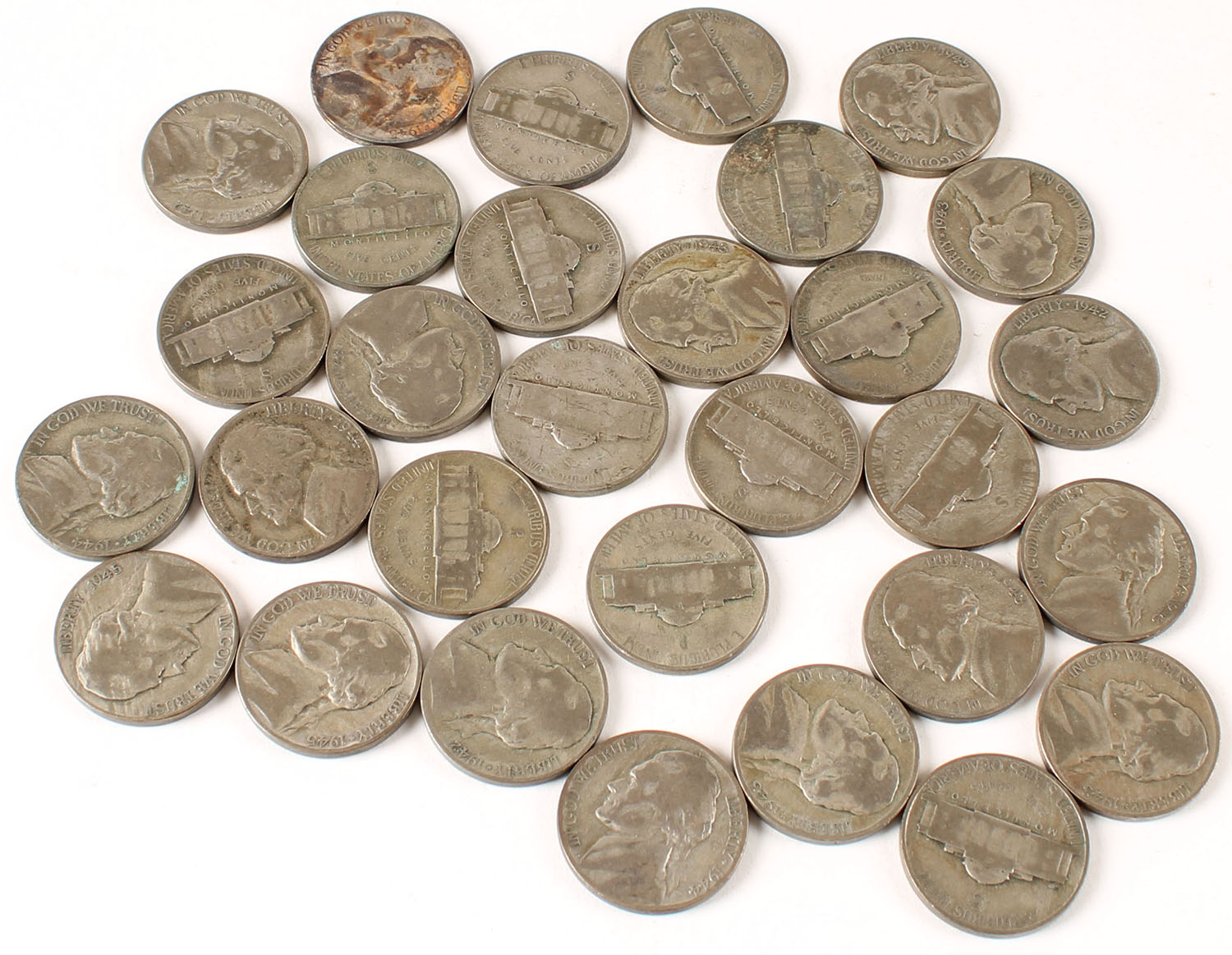 Lot of War time Nickels, 1942-1945. Grade: Excellent - Value: 10 to 200