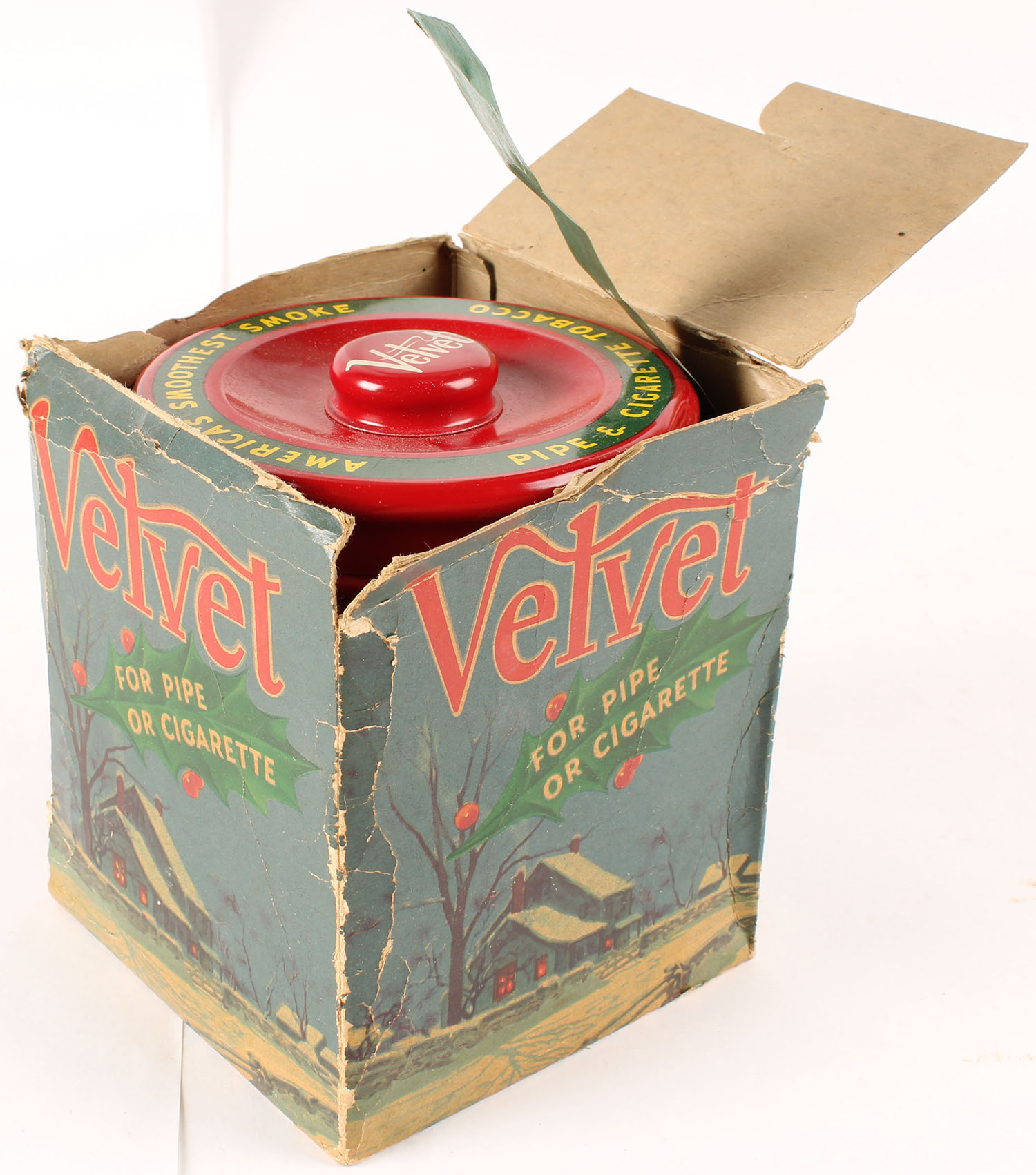 Large metal tobacco tin with cardboard box, FULL, Velvet smoking tobacco. Grade: Very Good ++ - Value: 20 to 200