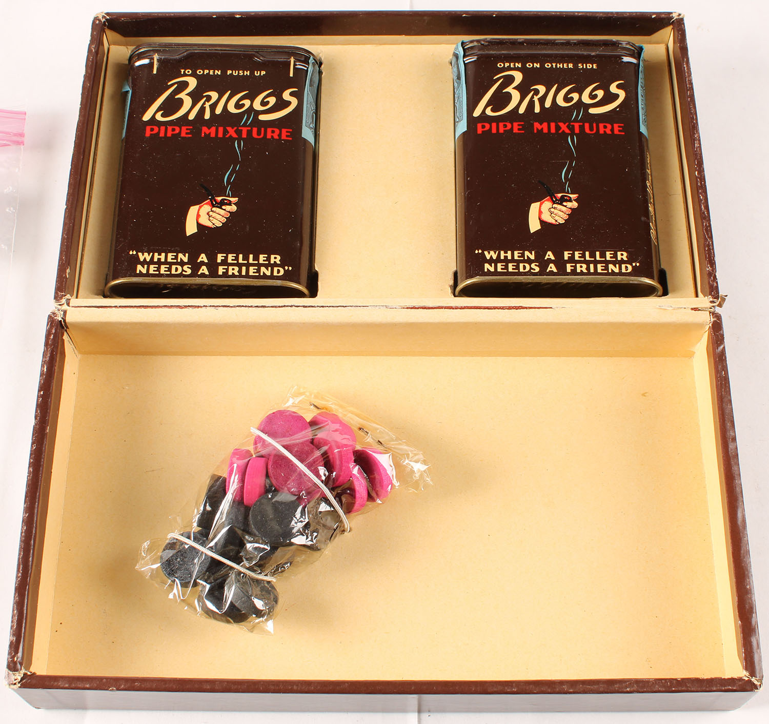 Large cardboard tobacco set, Full with 2 small tins, Briggs pipe mixture. Grade: Very Good ++ - Value: 20 to 100