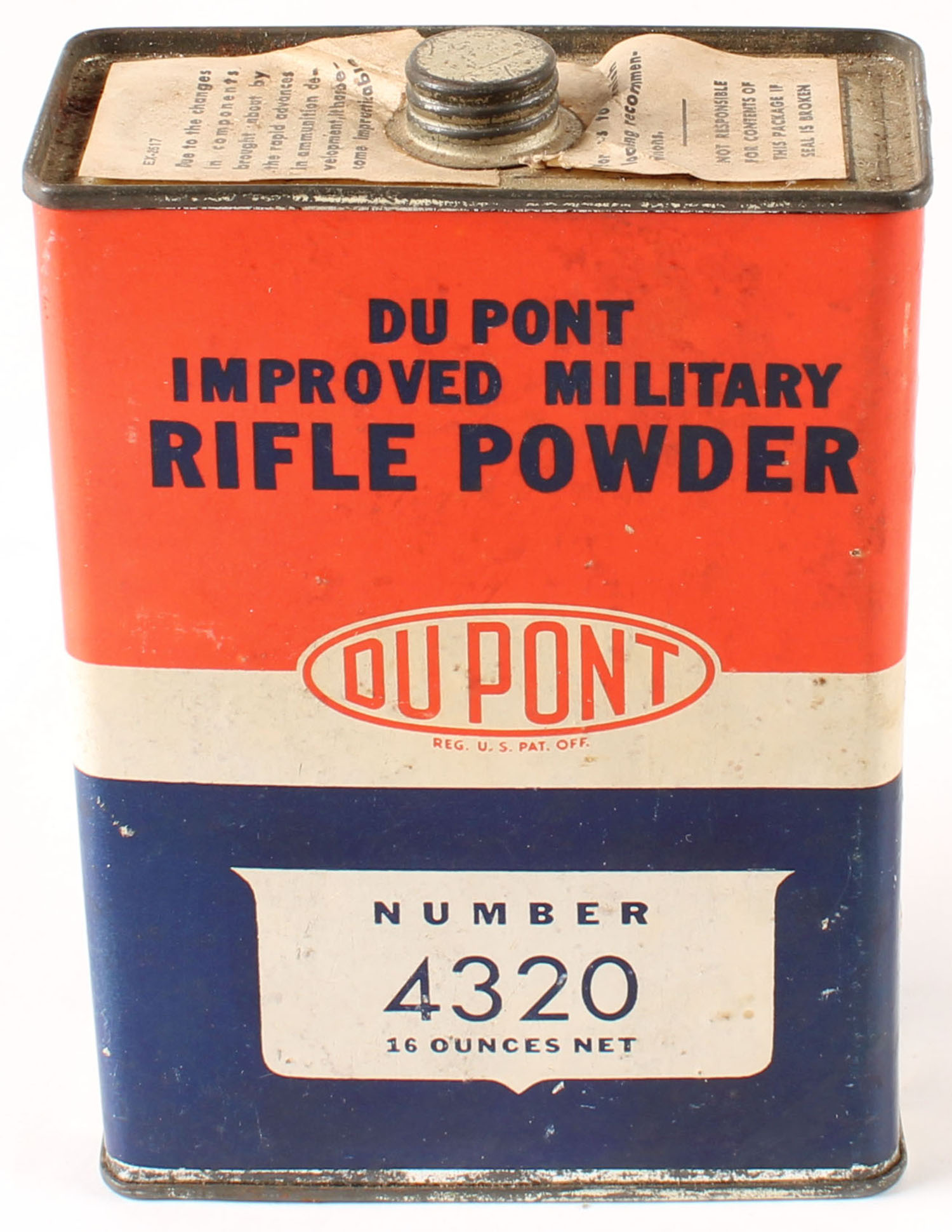 Dupont Improved military rifle powder, empty. Grade: Excellent - Value: 4 to 40