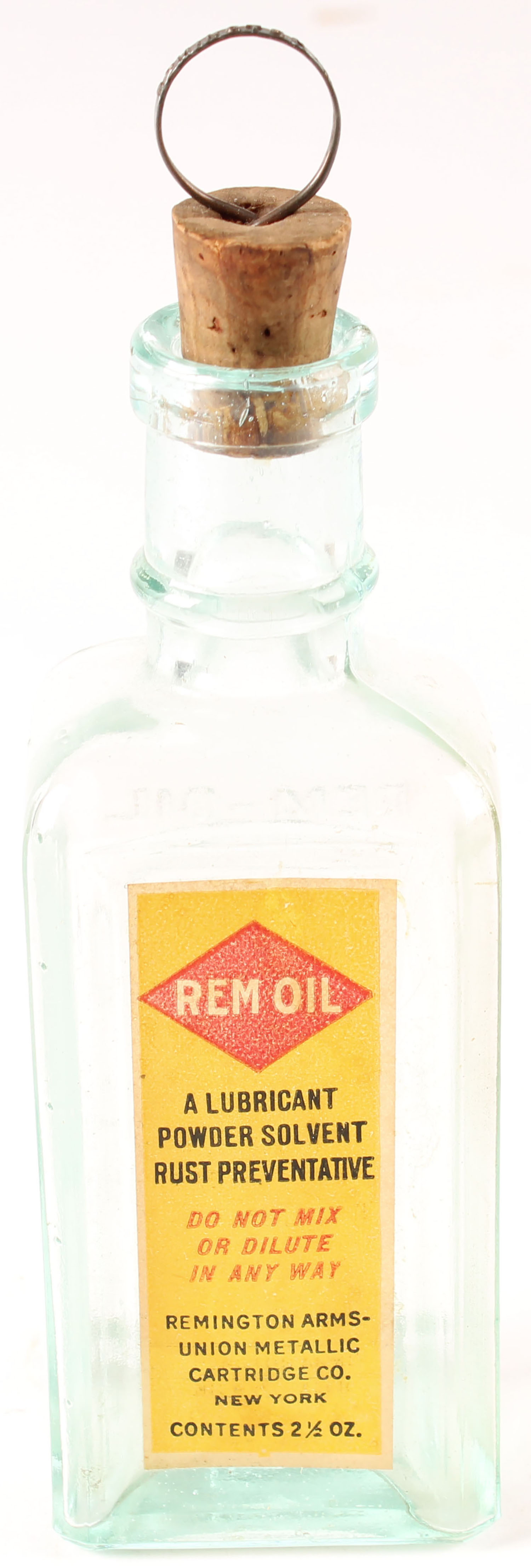 RARE Rem OIL glass jar, RARE metal ring on top has rasied lettering ''REMINGTON'', Empty, very bright and clean. Grade: Excellent - Value: 30 to 250