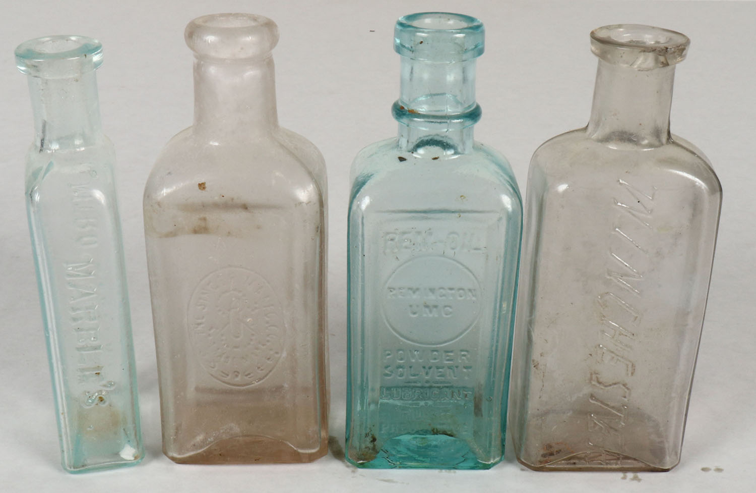 Lot of 4 empty glass oil jars. Grade: Excellent + - Value: 30 to 90