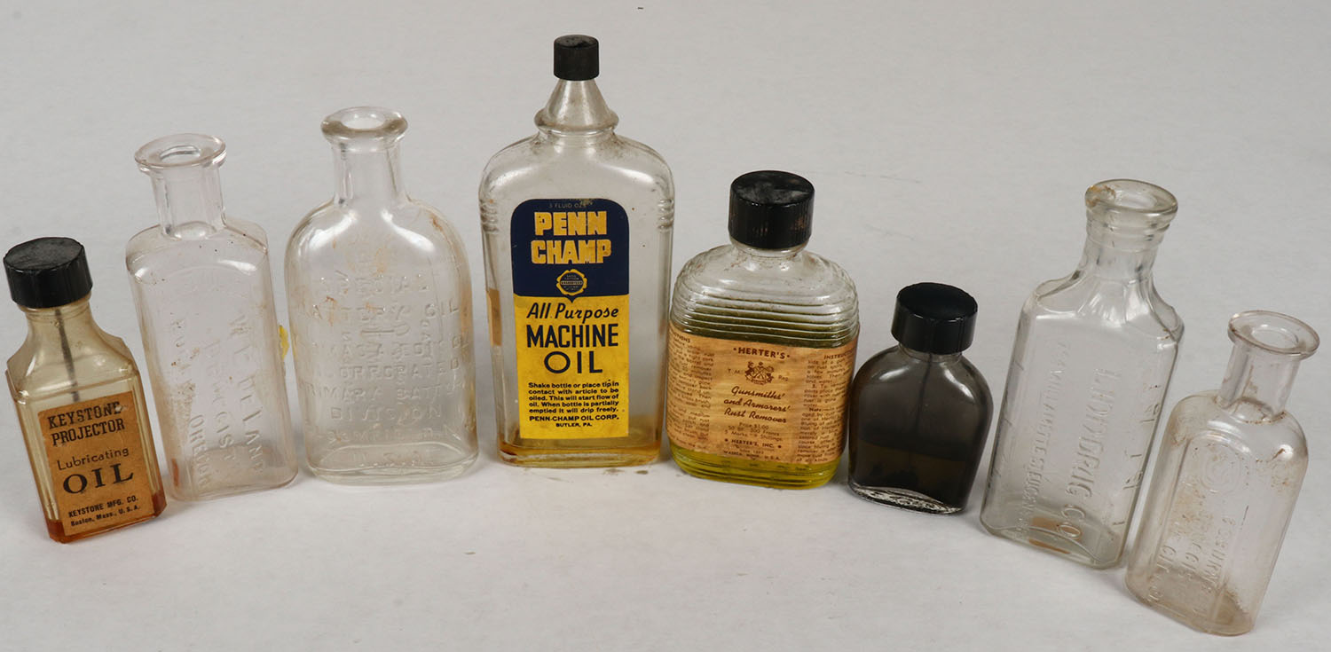Large lot of glass oil jars, some empty some partial. Grade: Excellent - Value: 4 to 50
