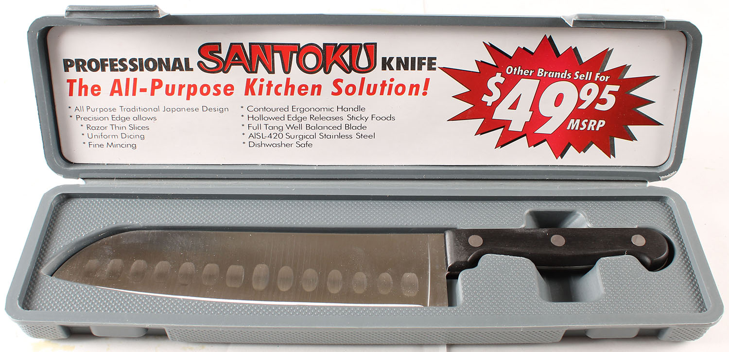 Professional Santoku Kitchen knife, in original case, has 8'' blade. Grade: Excellent ++ - Value: 10 to 40