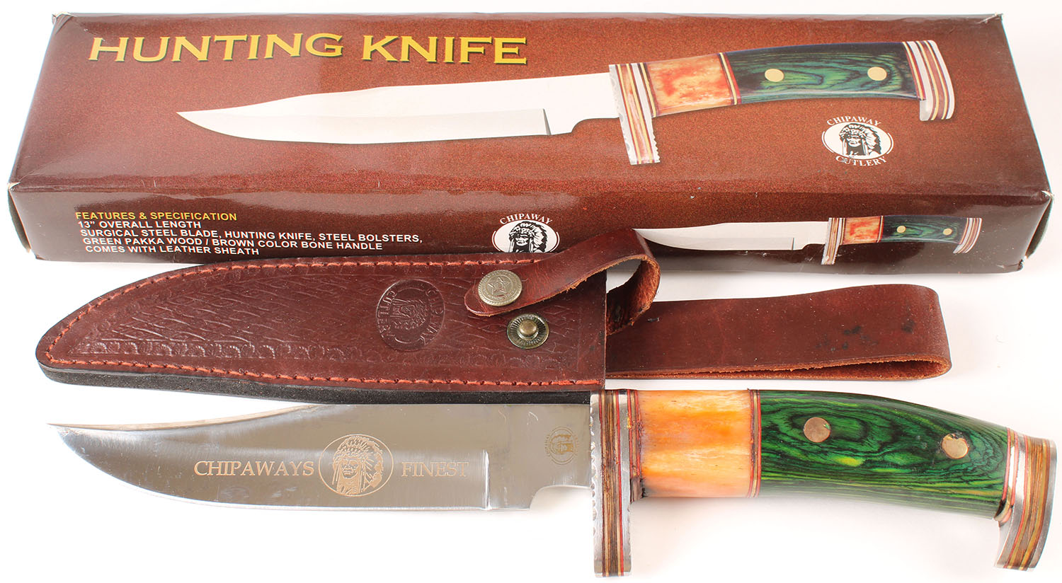 Chipaway Cutlery Hunting Knife, in original case, about a 6'' blade. Grade: Excellent ++ - Value: 20 to 60