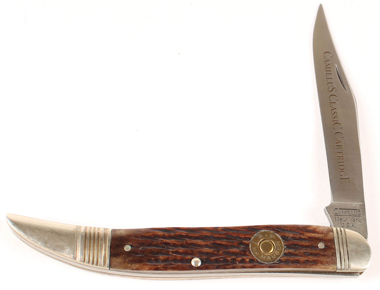 Camillus knife, 3 3/4'' folding blade, celliod handle, solid and clean. Grade: Excellent - Value: 10 to 50