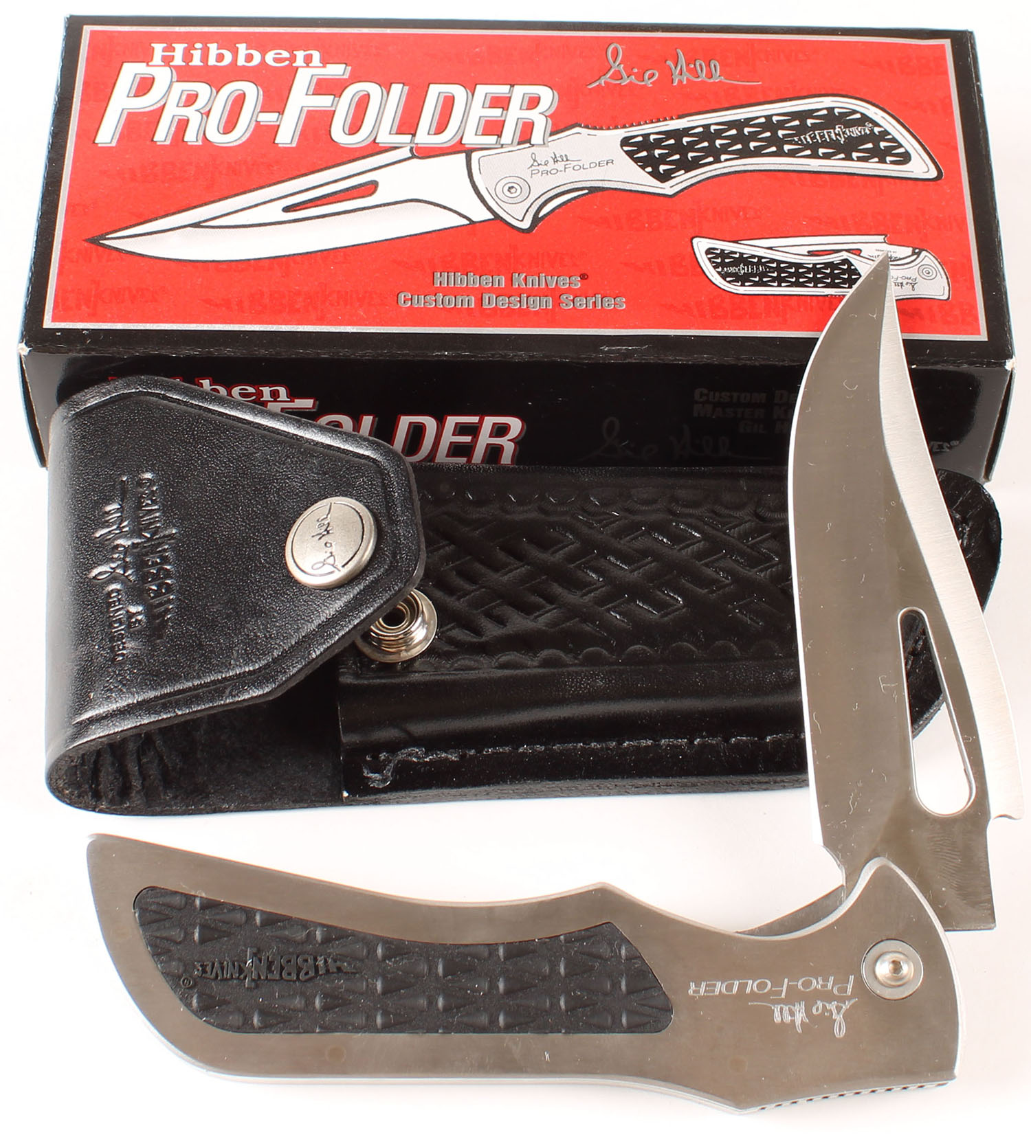 Hibben Pro-Folder knife, folding 4'' blade knife, in box and sheath. Grade: Excellent ++ - Value: 16 to 60