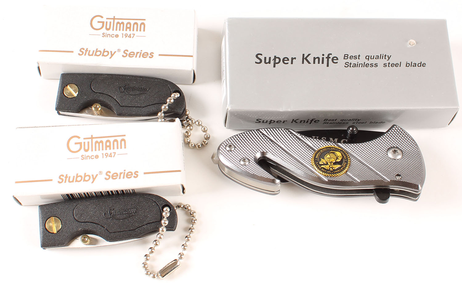 Lot of 3 folding knives, Gutmann and Super Knife , in box. Grade: Excellent ++ - Value: 20 to 60