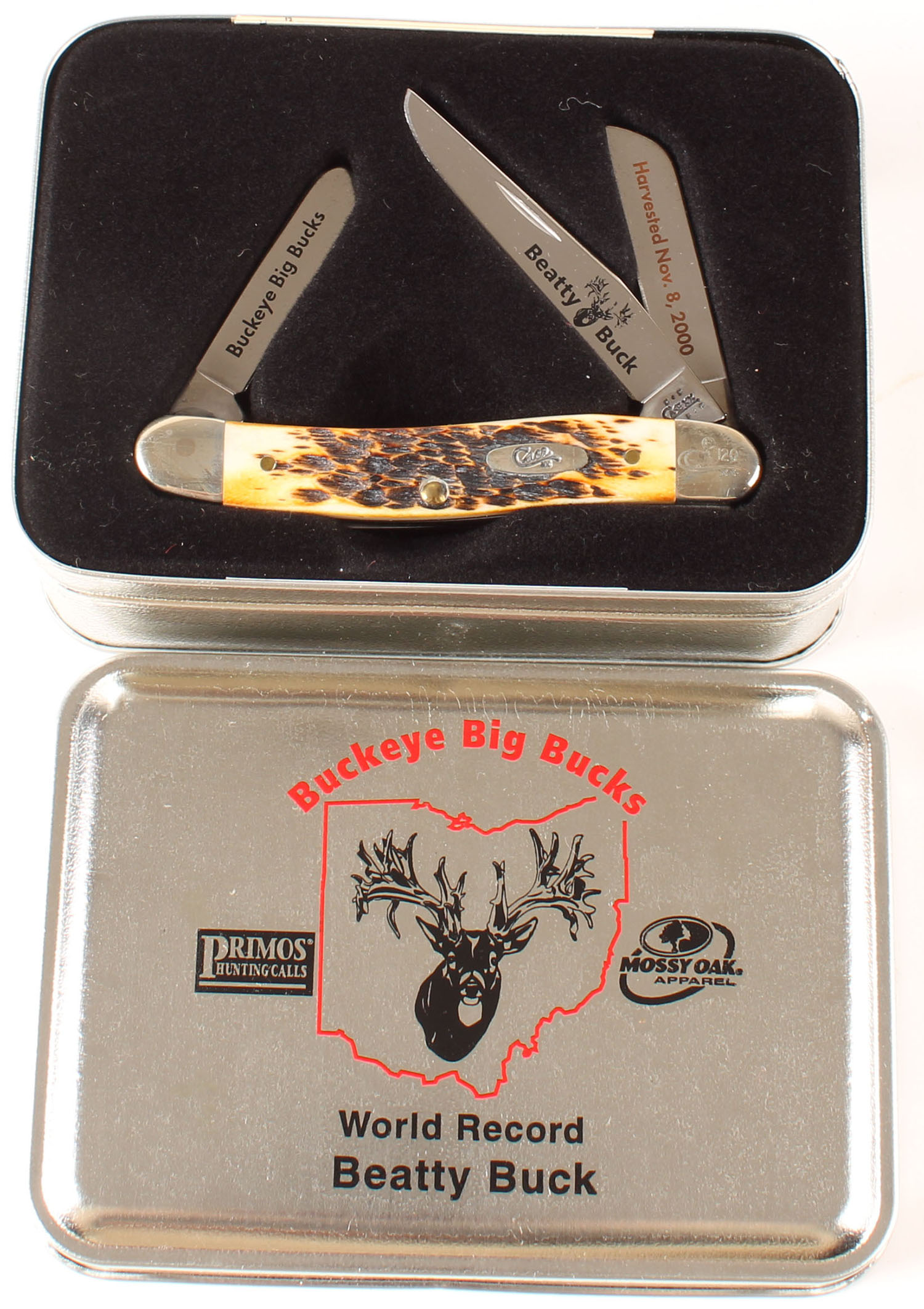 Case Buckeye big bucks knife, folding knife, with 3 blades, sealed in box. Grade: MINT - Value: 30 to 60