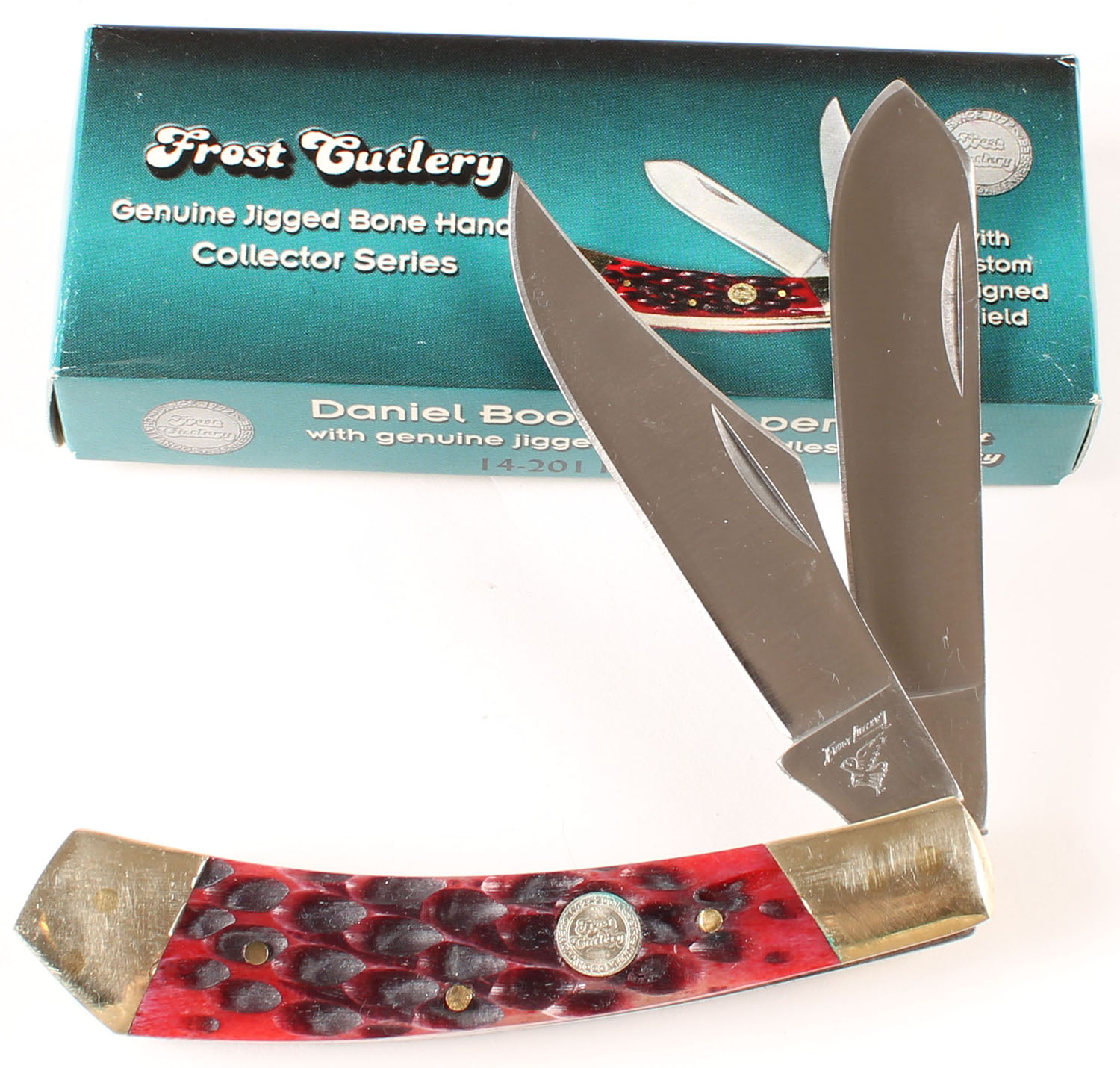 Frost Cutlery, Daniel Boone Trapper knife, folding knife, with 2 3'' blades, in box. Grade: MINT - Value: 4 to 50