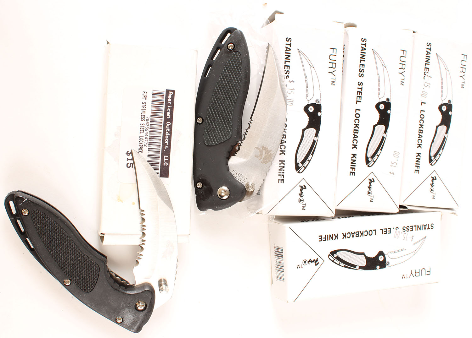 Lot of 5 Fury folding knives, in box. Grade: MINT - Value: 16 to 60