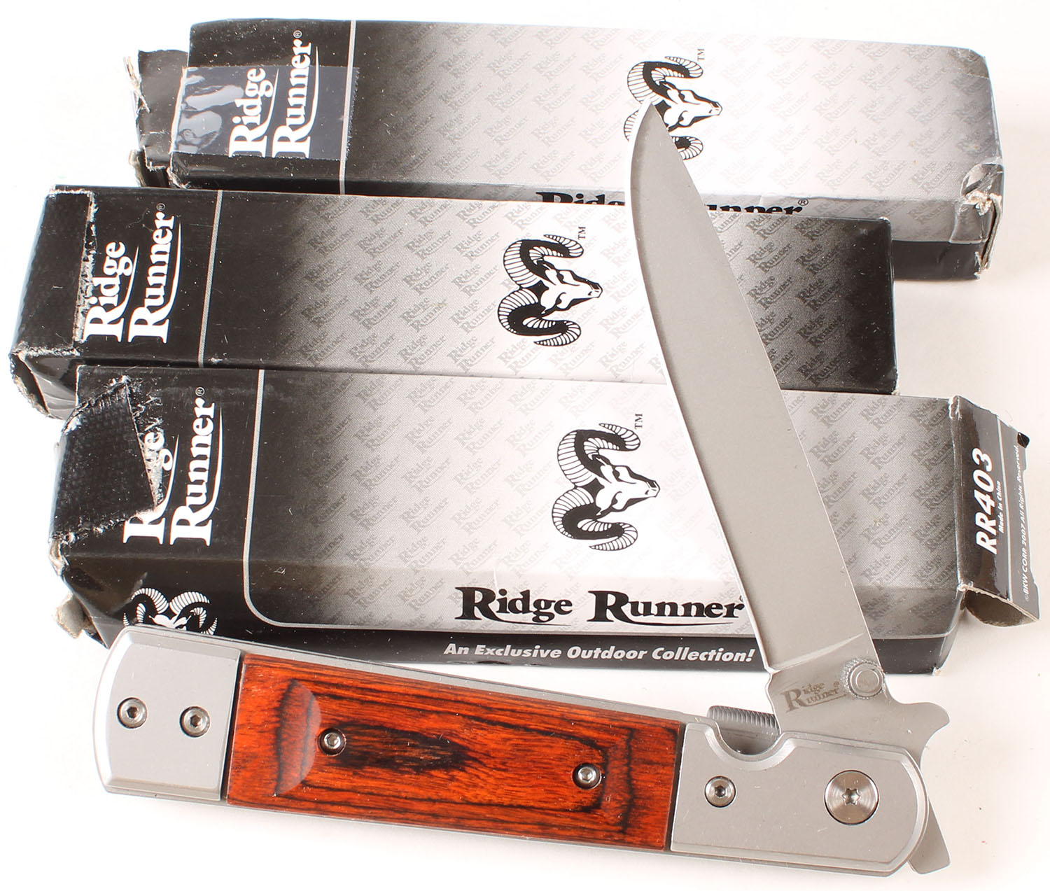 Lot of 3 Ridge Runner folding knives, in box. Grade: MINT - Value: 16 to 50