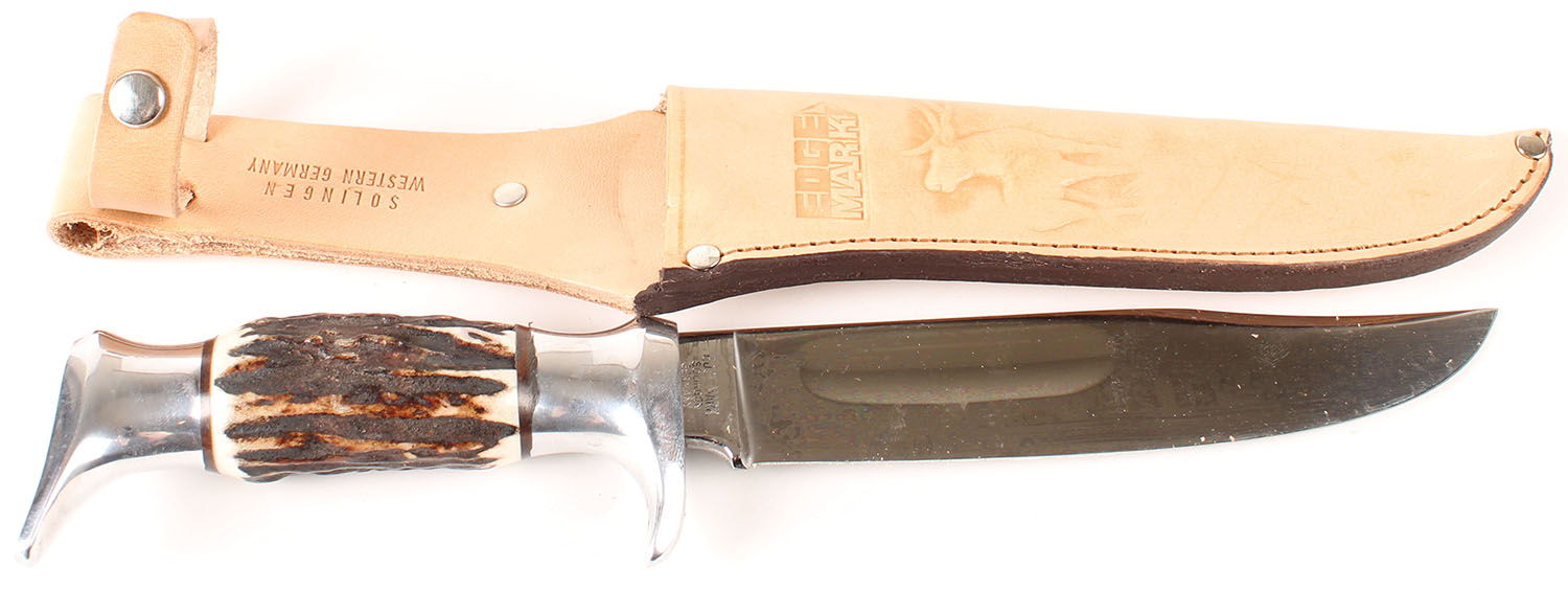Edge Mark Made in Germany knife, 5 1/2'' blade, has sheath. Grade: Excellent - Value: 16 to 50