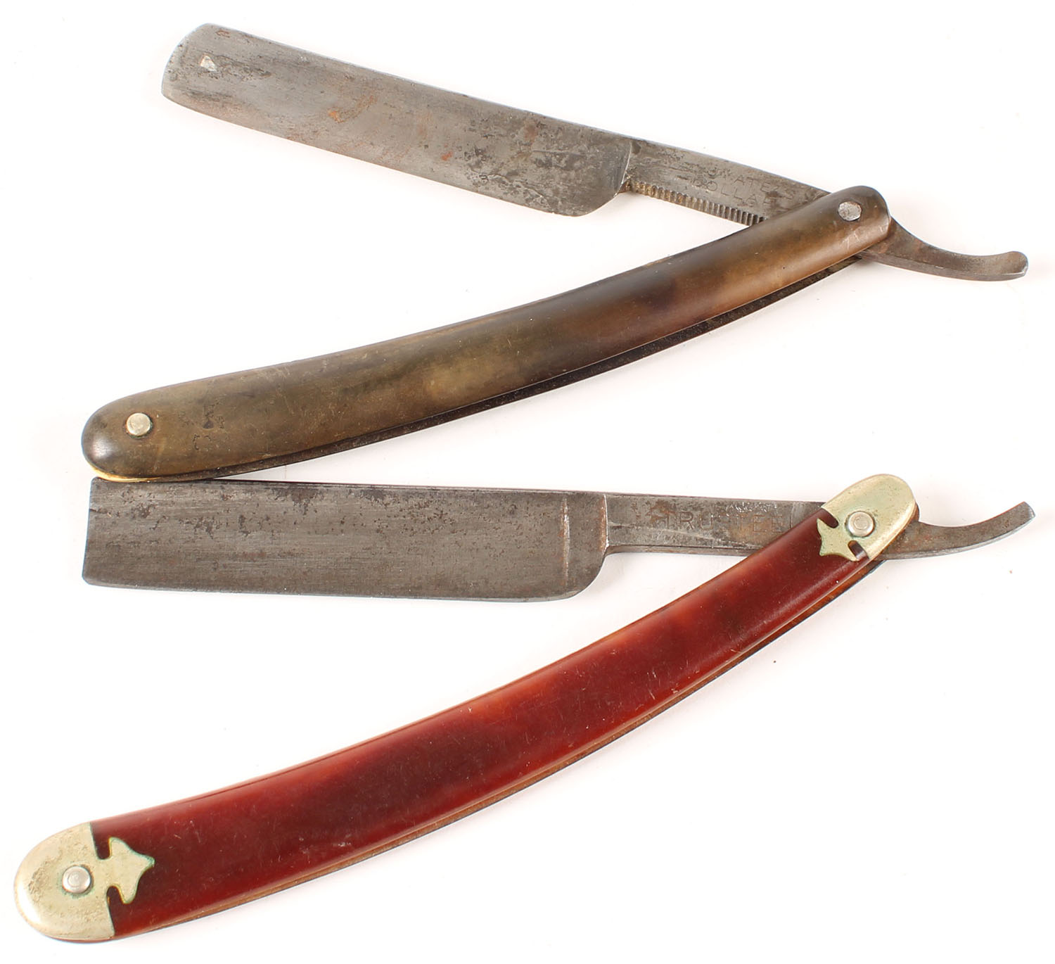 Lot of 2 antique straight razors, some age soiling, both solid. Grade: Very Good - Value: 20 to 50