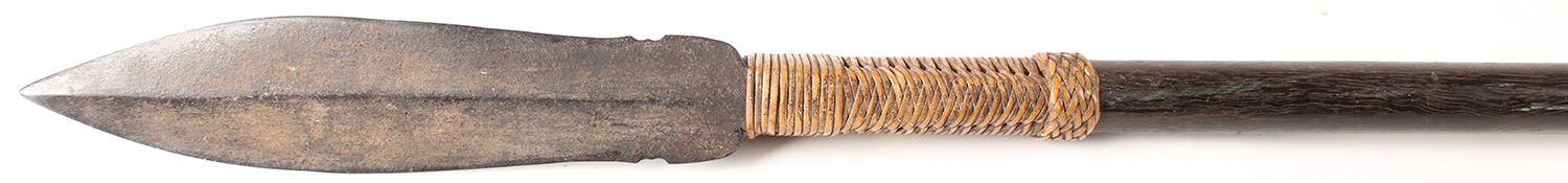 Very long Antique Sumpitan(blow gun) of the Batak people, Borneo Region, with metal blade fashioned to the end! 84'' OAL. Grade: Excellent - Value: 40 to 200