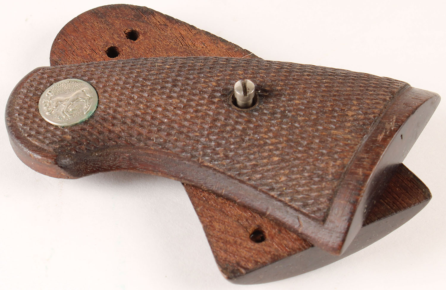 COLT pistol grips, wood, with screws. Grade: Excellent - Value: 30 to 90