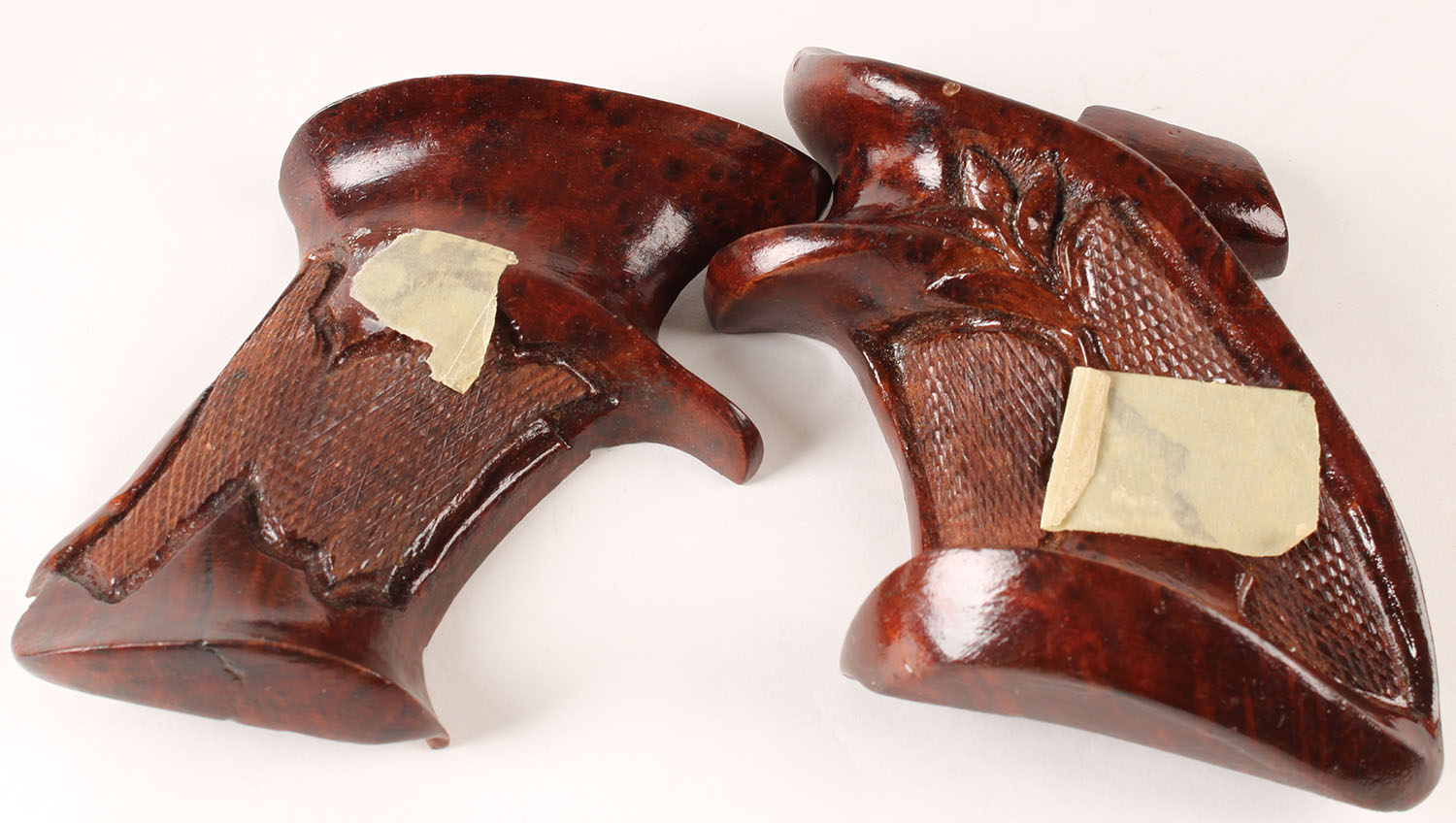 Wood pistol grips, unmarked. Grade: Excellent - Value: 4 to 50