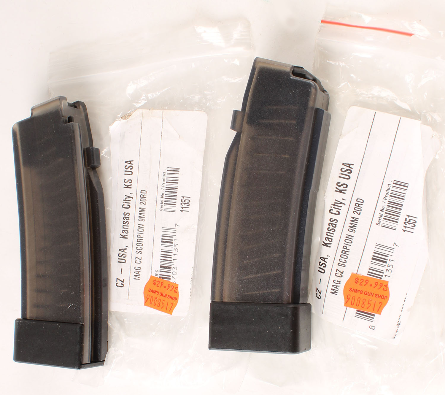 Lot of 2 CZ Scorpion 9mm 20 rd mags. Grade: Excellent ++ - Value: 20 to 60