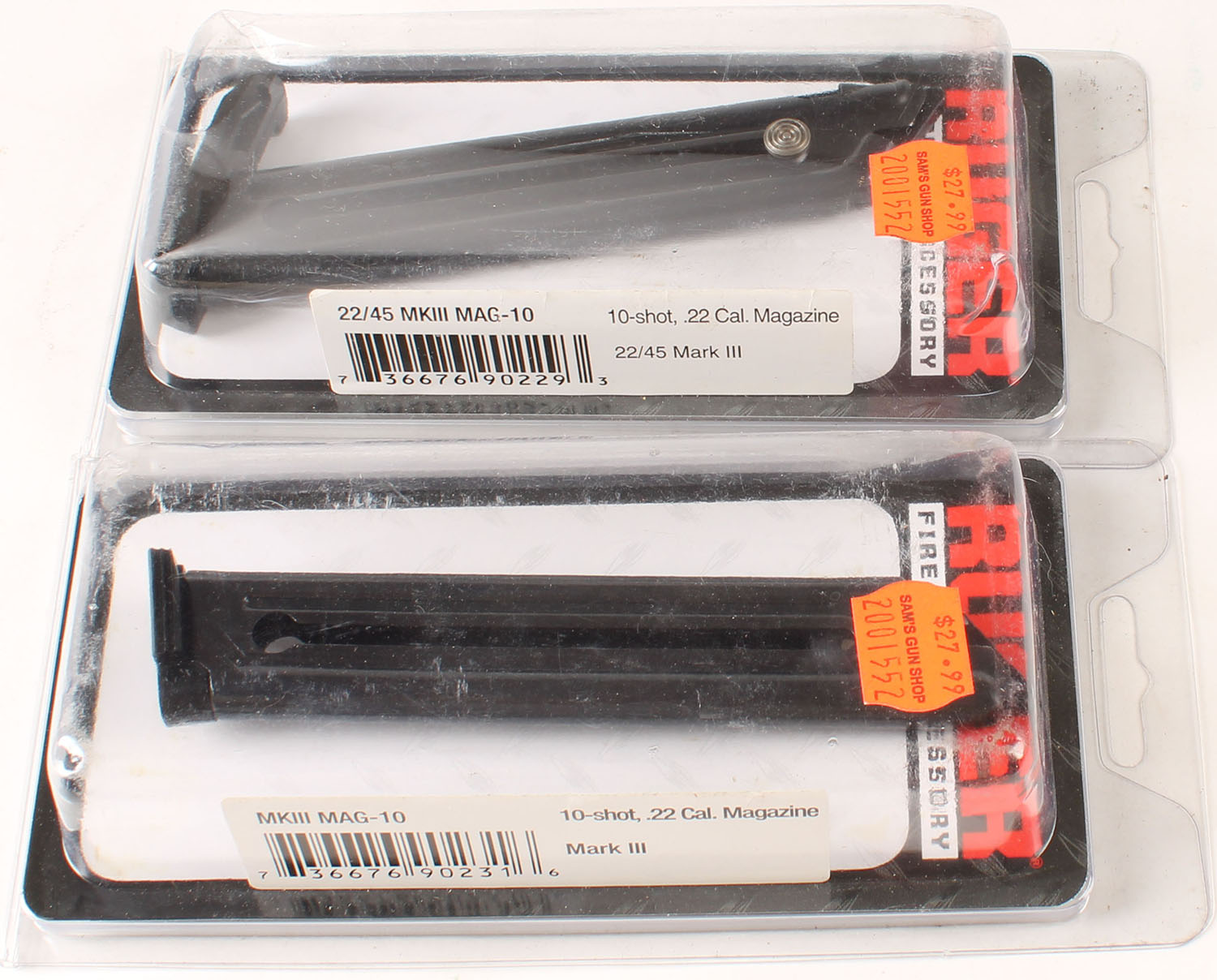 Lot of 2 Ruger mags, MKIII 10 rd .22 cal mag. Grade: Excellent ++ - Value: 20 to 60