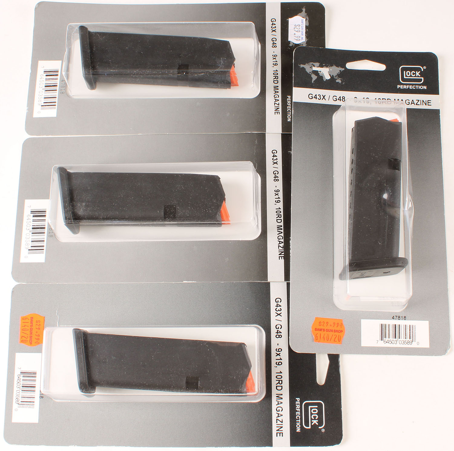 Lot of 4 Glock mags, G43x/48 9x19 10 rd mags. Grade: Excellent ++ - Value: 50 to 100
