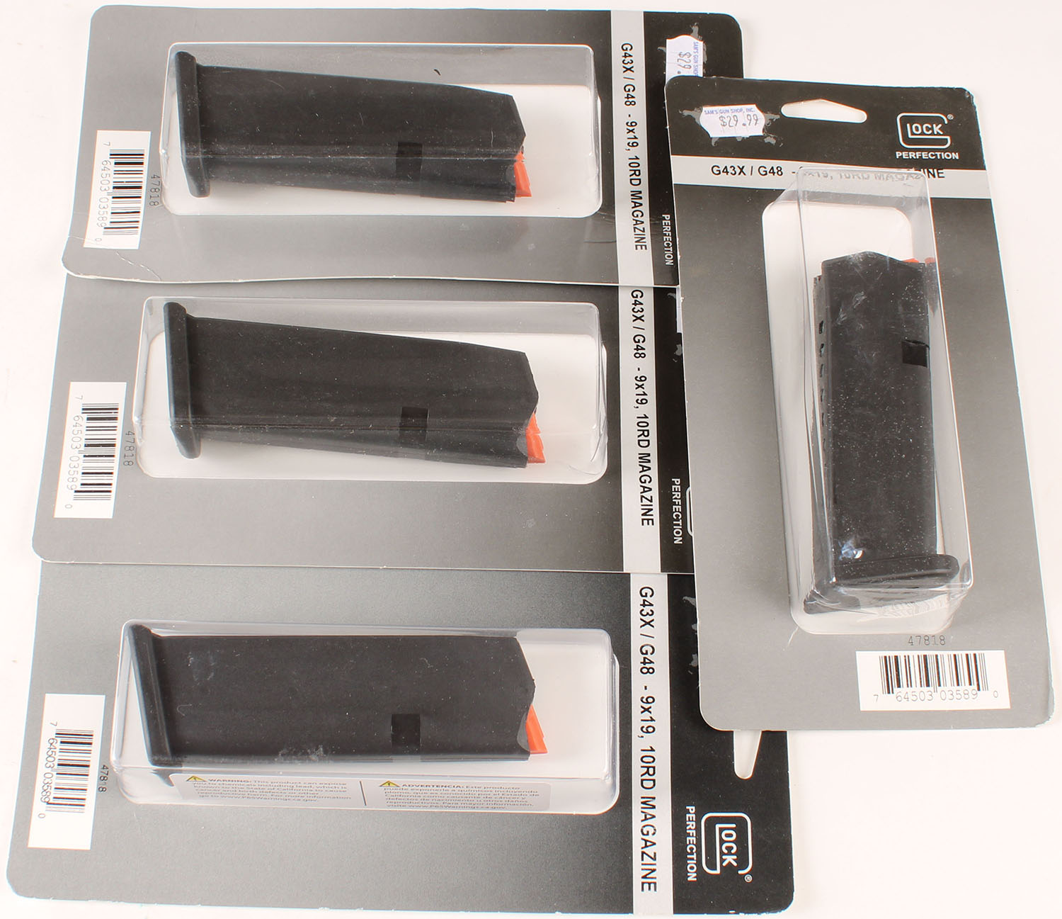 Lot of 4 Glock mags, G43x/48 9x19 10 rd mags. Grade: Excellent ++ - Value: 50 to 100