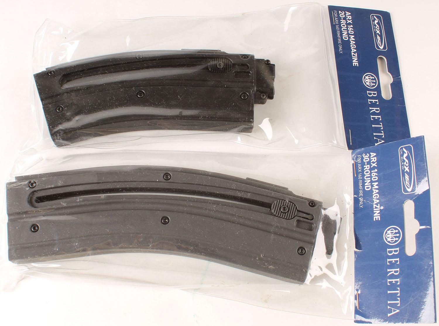 Lot of 2 Berretta ARx160 .22 LR 30 rd mags. Grade: Excellent ++ - Value: 20 to 60