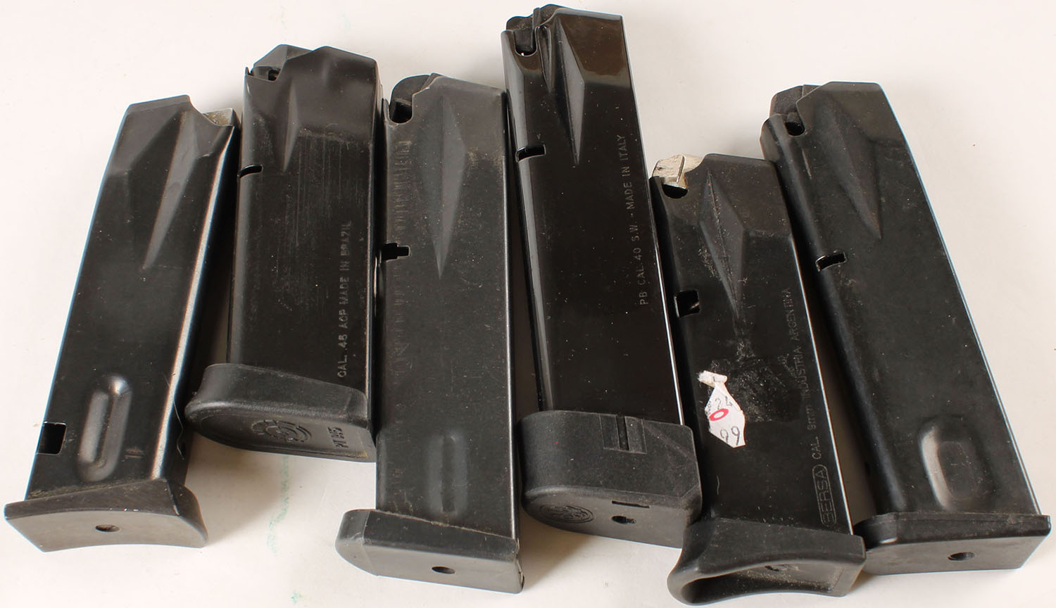 Lot of 5 pistol mags, 9mm, .40, 45 cal and 3 unmarked. Grade: Excellent ++ - Value: 16 to 50
