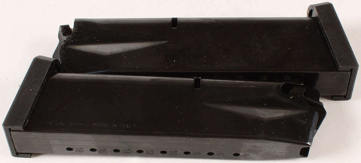 Lot of 2 Berretta 92x 9mm cal pistol mags. Grade: Excellent - Value: 16 to 50